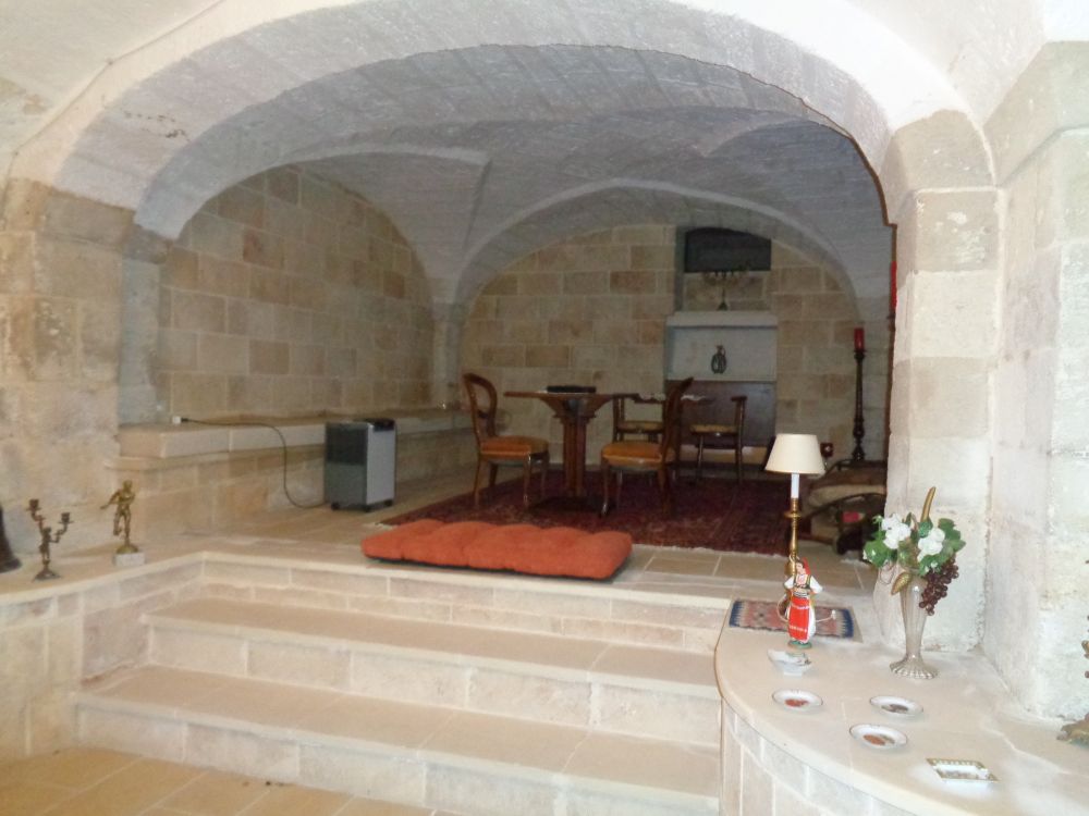 The property is arranged around an impressive stone barrel-vaulted entrance hall, a striking architectural centerpiece that harmoniously connects the different sections of the estate.