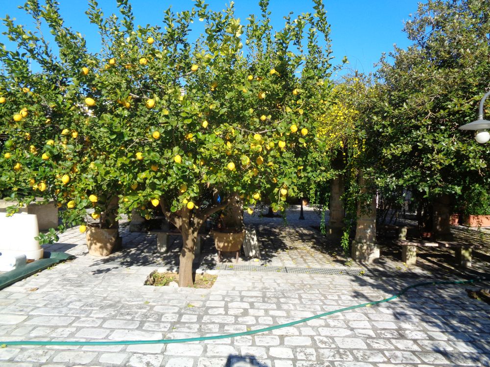All’esterno, un curato giardino con agrumeto conduce alla zona piscina con solarium, creando un contesto riservato e rilassante.