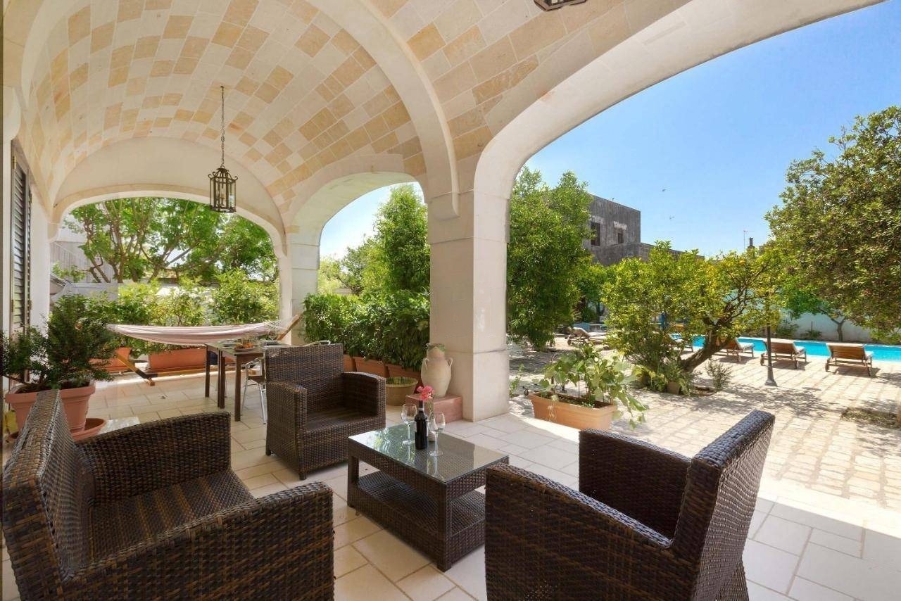 Overlooking a spacious patio in Lecce stone of approximately 140 sqm, there are also four en-suite bedrooms with independent entrances, perfectly suited for an already established tourist accommodation business.