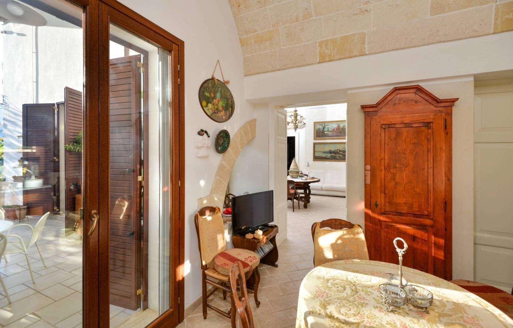 Affacciate su un ampio patio in pietra leccese di circa 140 mq, si trovano inoltre quattro camere con bagno e ingresso autonomo, perfette per un utilizzo turistico già strutturato.