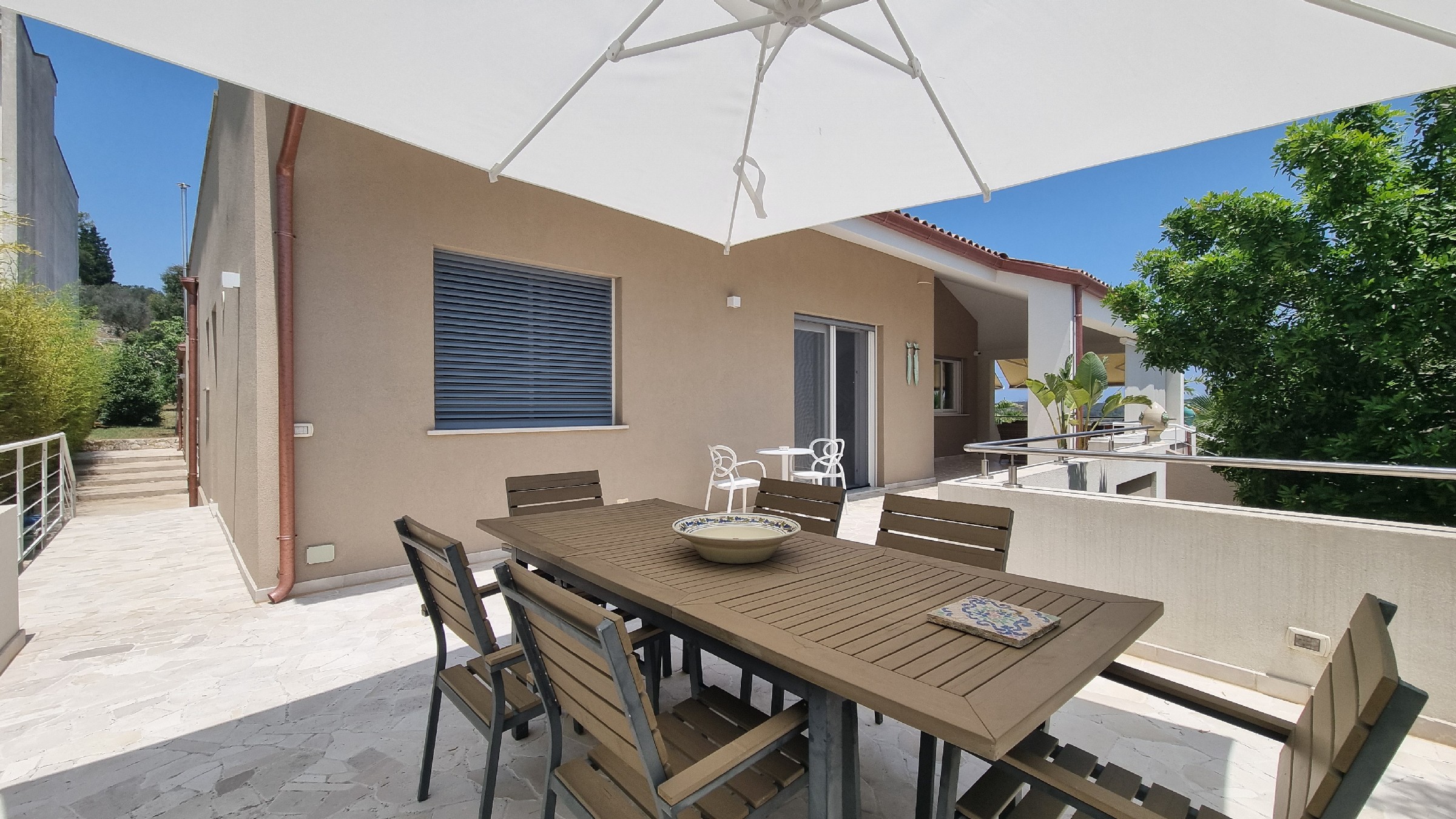 Il giardino di 3.000 mq è un’oasi di tranquillità, con una varietà di piante ornamentali e alberi da frutta, oltre a diverse aree relax. La piscina, situata in una zona riservata del giardino, completa questa splendida proprietà, offrendo un rifugio privato e immerso nel verde.