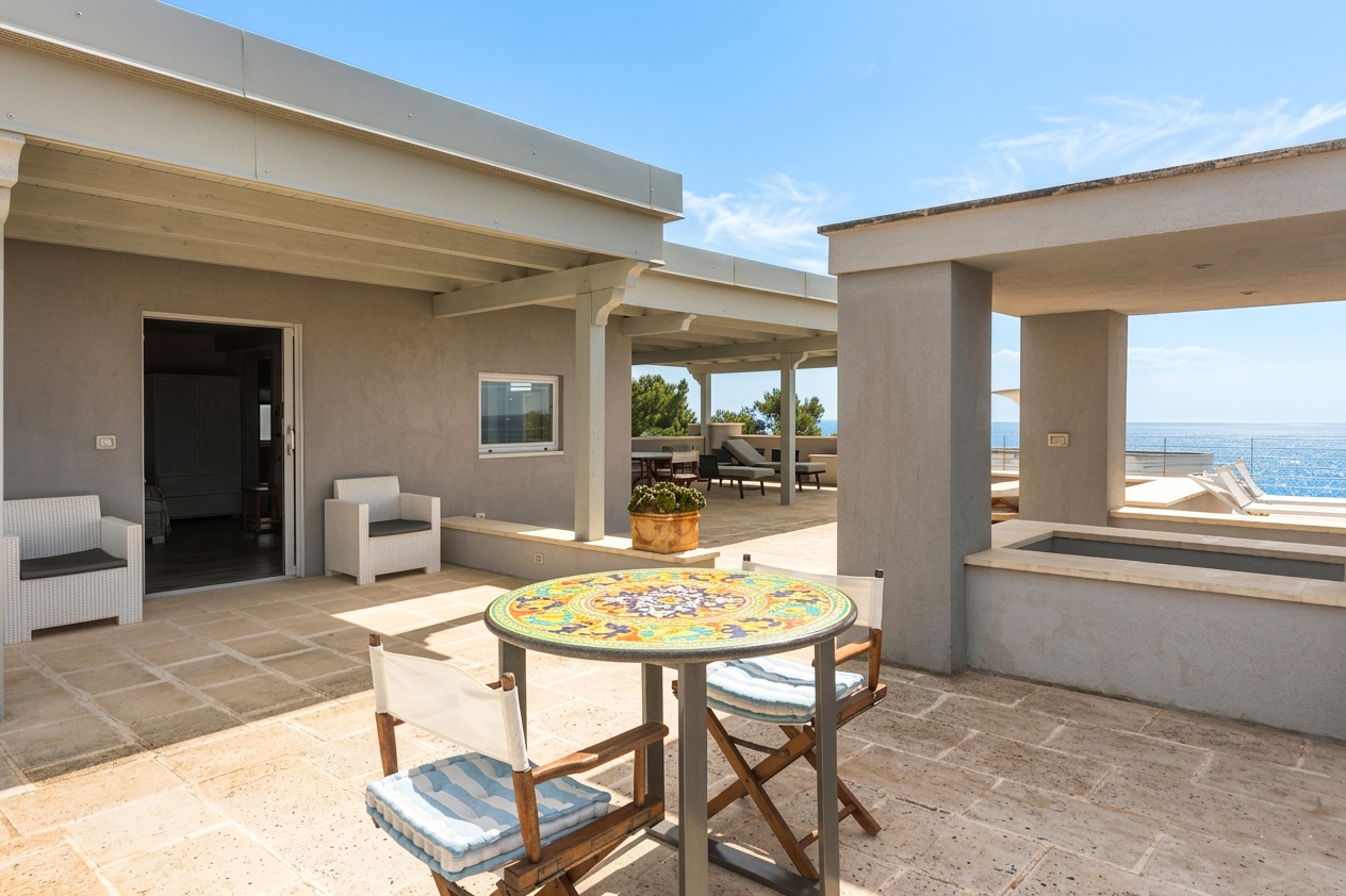 From an investment perspective, the presence of multiple independent units, generous outdoor spaces, the swimming pool, and panoramic terraces make the property particularly suitable for high-end holiday rentals, which are in strong demand in the Capo di Leuca area.