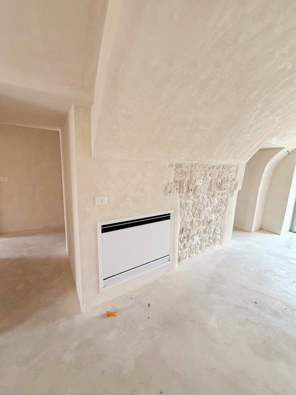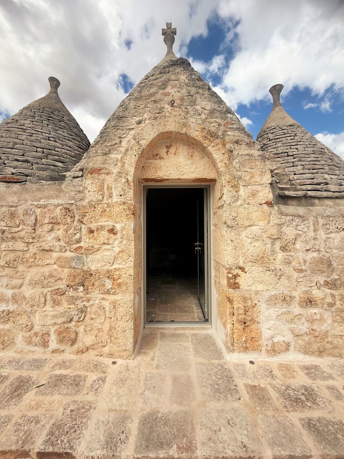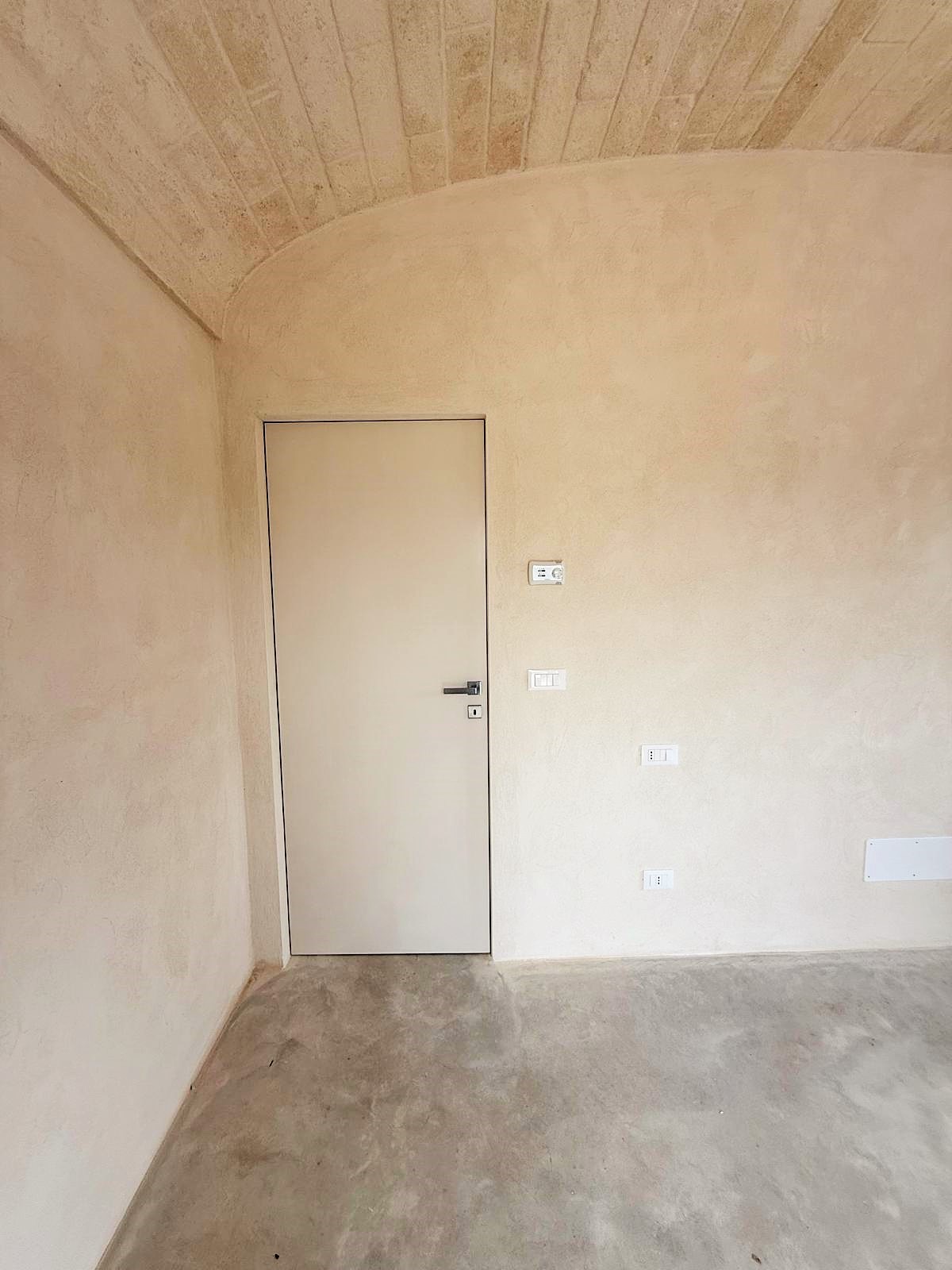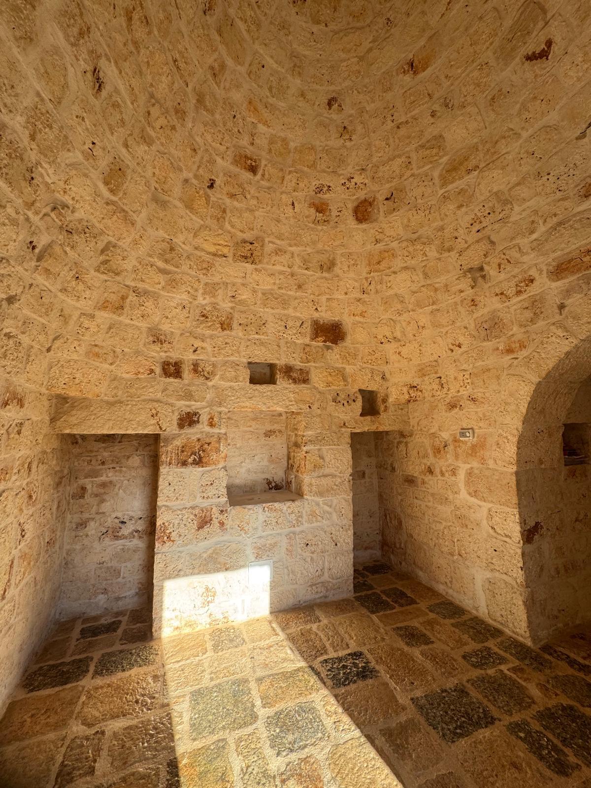 The renovation has enhanced the original architectural features, such as barrel vaults and the typical conical roofs of the trulli, with finishes that highlight the authenticity of the structure.