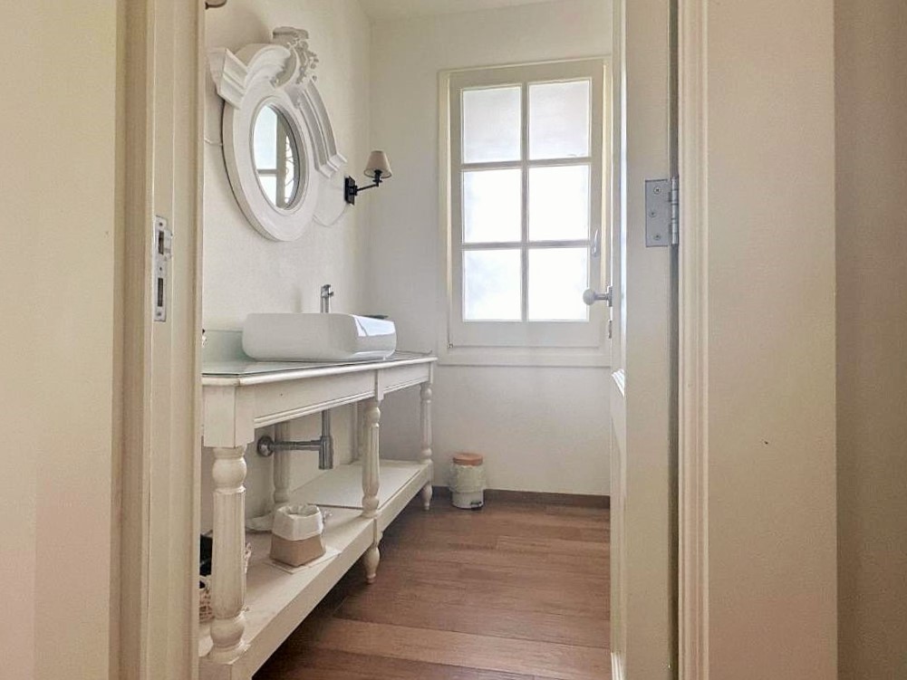 The villa is surrounded by a private, fully fenced garden of approximately 800 sqm, meticulously landscaped and enhanced by manicured lawns, natural stone paving and mature trees that create evocative shaded areas while ensuring complete privacy. The garden benefits from double access, both pedestrian and driveway, guaranteeing comfort, discretion and security.