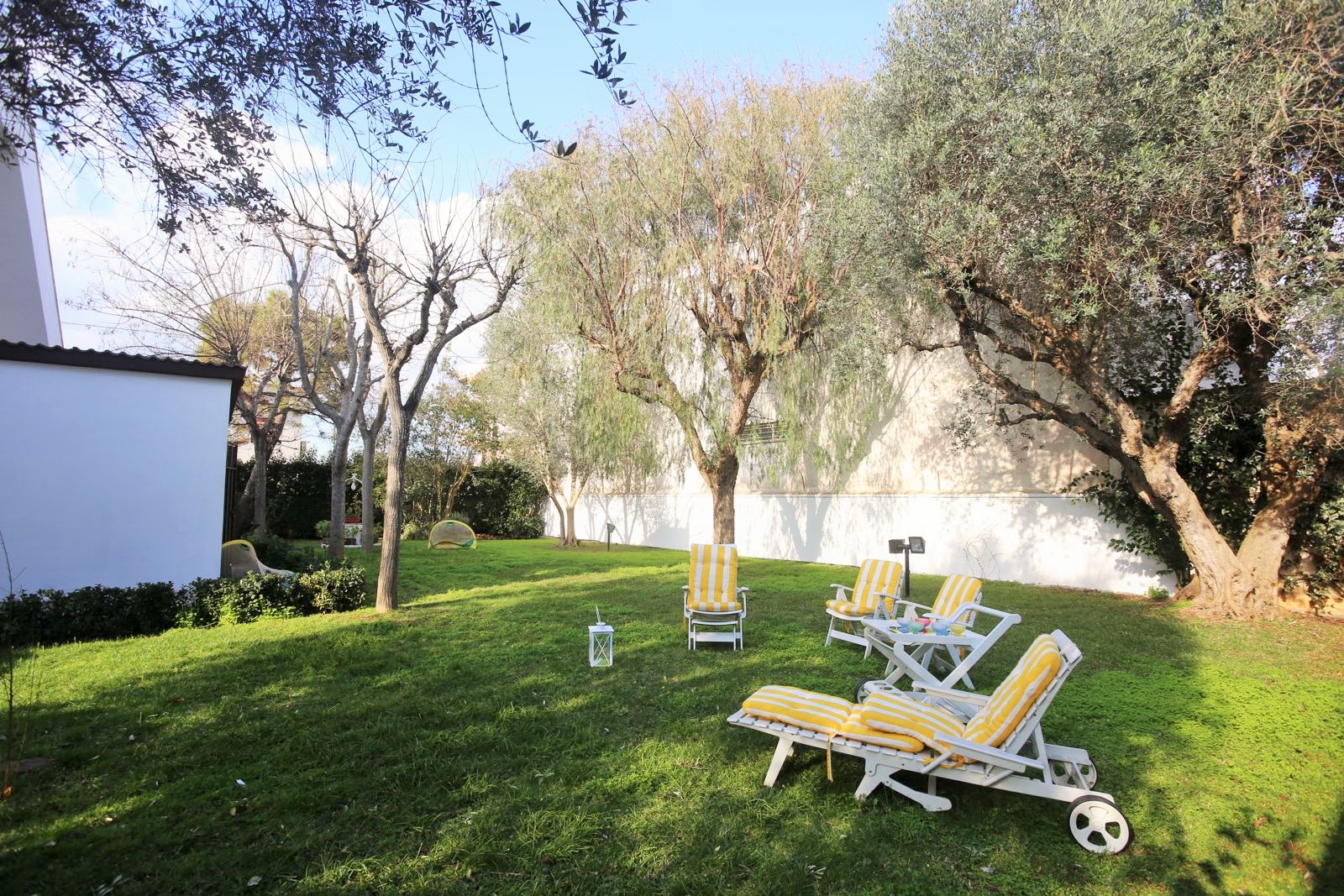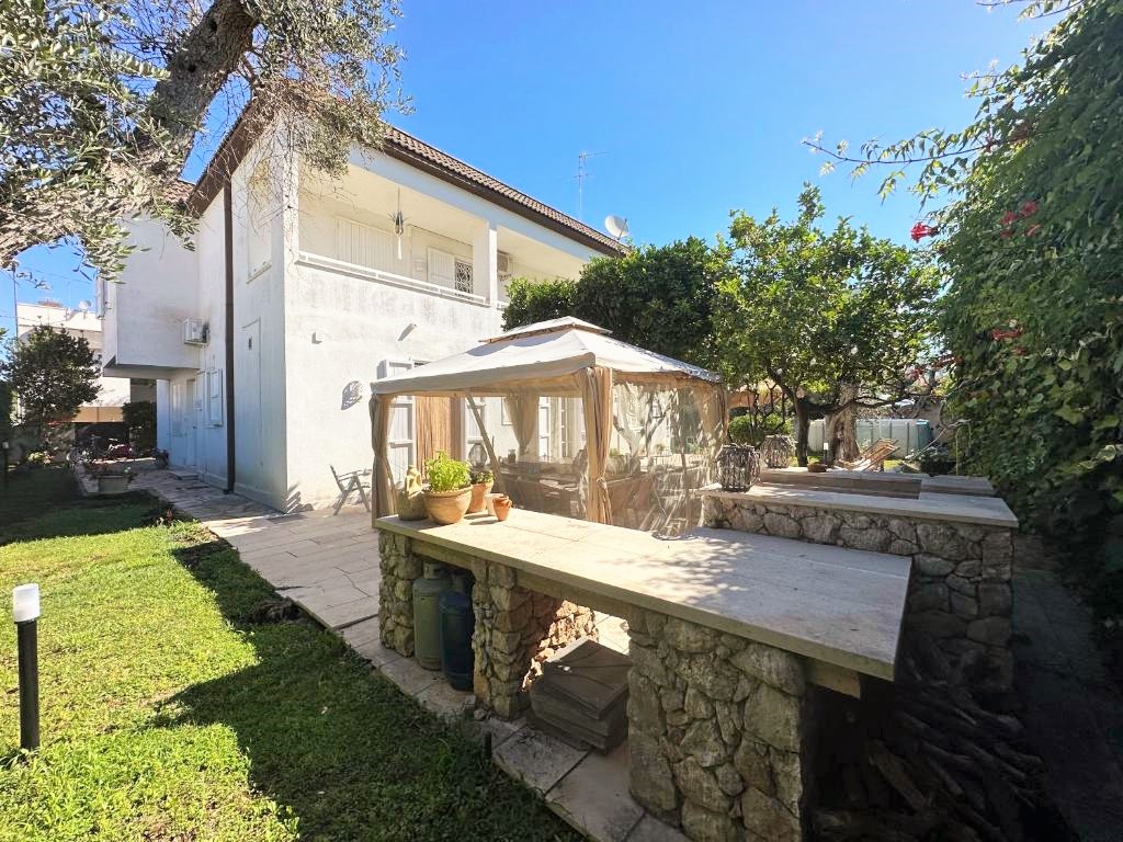 La villa è circondata da un giardino privato di circa 800 mq, completamente recintato e finemente curato, impreziosito da prato inglese, pavimentazioni in pietra naturale e alberi ad alto fusto che creano suggestive zone d’ombra e garantiscono assoluta privacy. Il giardino dispone di doppio accesso, carrabile e pedonale, assicurando comodità, riservatezza e sicurezza.